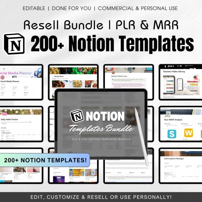 ✨ 200+ Notion Template Bundle PLR ✨